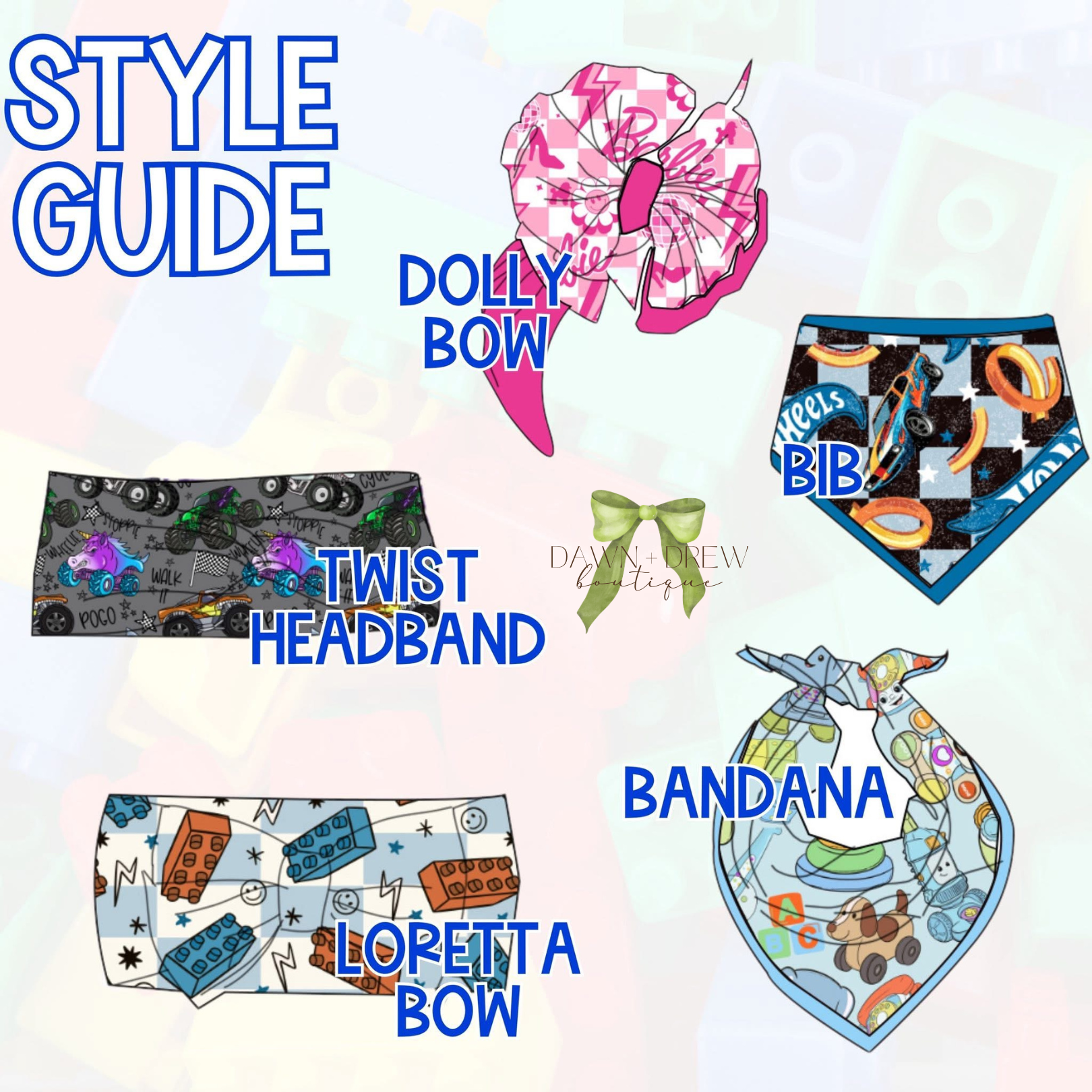 ALL PRINTS CAN GO ON ALL LISTED STYLES