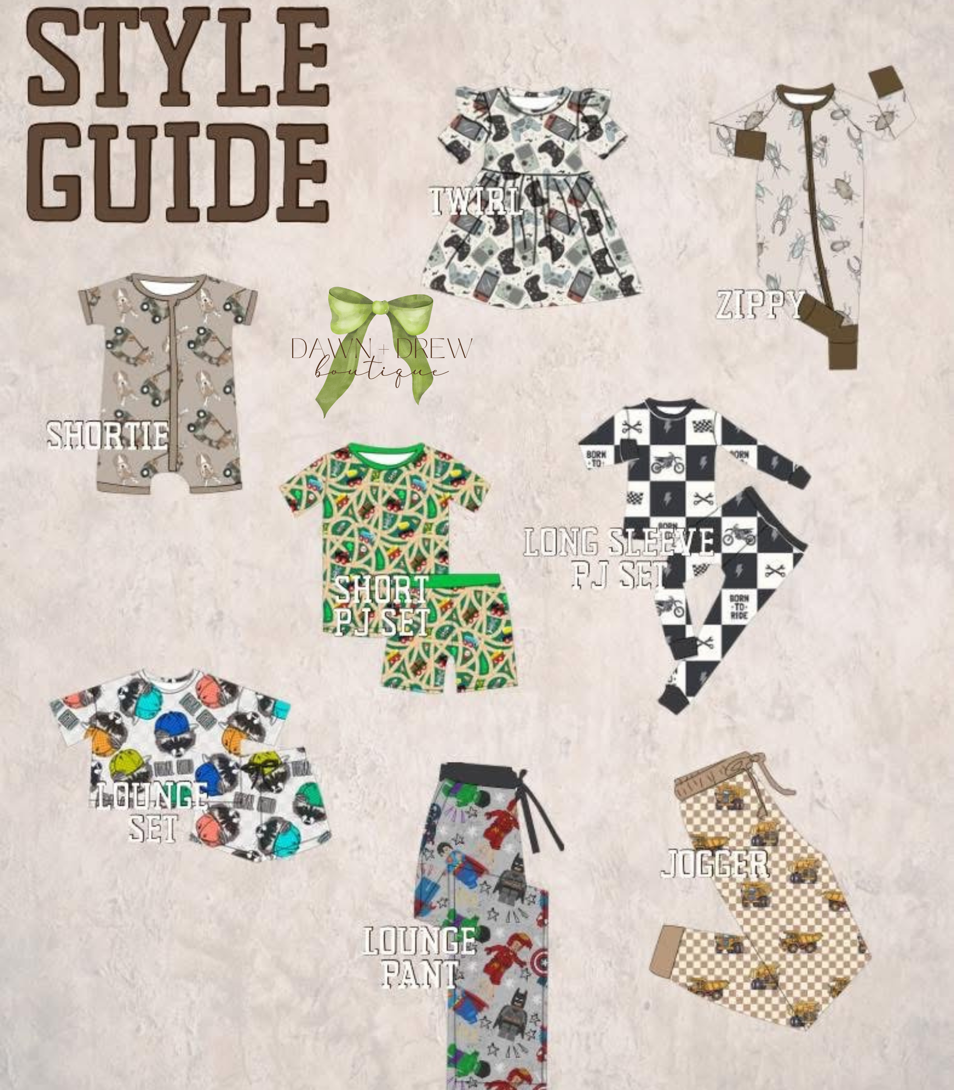 ALL PRINTS CAN GO ON ALL LISTED STYLES